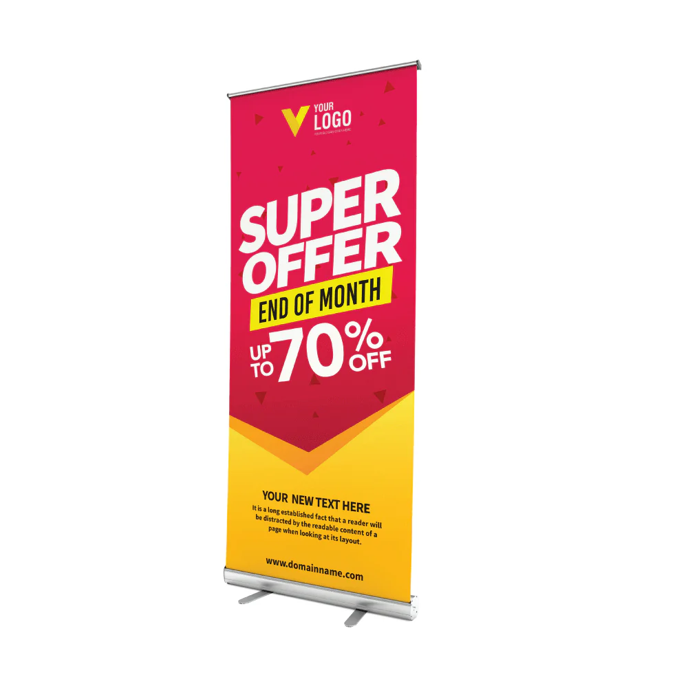 طباعة رول أب بألوان زاهية ، مثالية للفعاليات والمعارض والعروض الترويجية. توفر لك حلًا مميزًا لعرض رسالتك بشكل احترافي وسهل النقل.